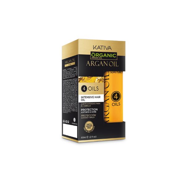 Kativa Argán 4 Oils 60ml. Aceite con una exclusiva fórmula de 4 activos naturales que ayudará a tu cabello a devolverle la elasticidad y firmeza que necesita.