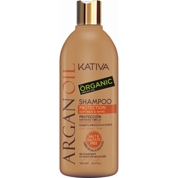 Kativa Argán Oil Champú. Formulado con aceite de argán orgánico, carótenos, vitamina E y omega 3 y 9. El cabello consigue fuerza, nutrición, hidratación y brillo natural. Recomendado para cabello seco y sin brillo.