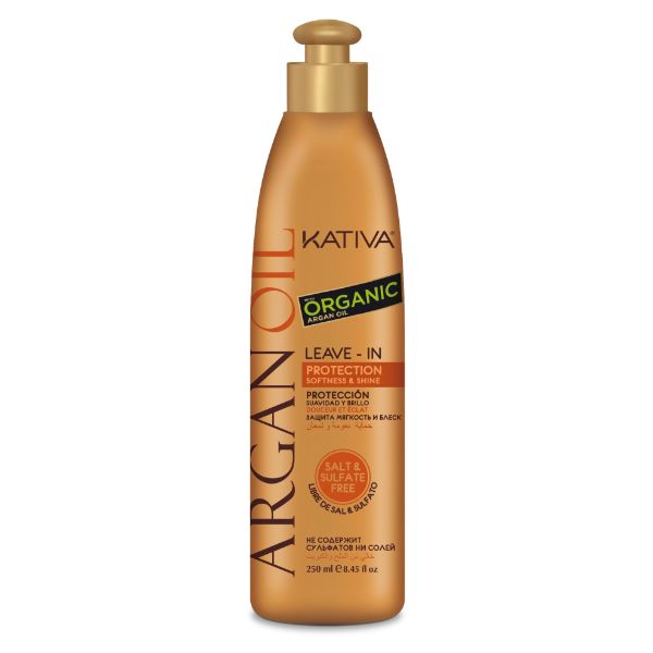 Kativa Argán Oil leave-in 250ml. Crema de peinar libre de sal y sulfato. Está enriquecido con aceite de argán orgánico, vitamina E, antioxidantes y omega 3 y 9. Aporta brillo, suavidad y reduce el encrespado. Mantiene el cabello hidratado de forma duradera.